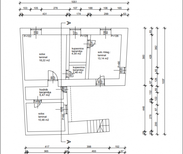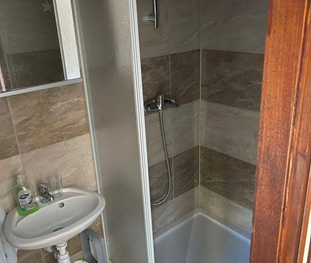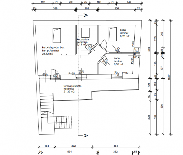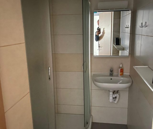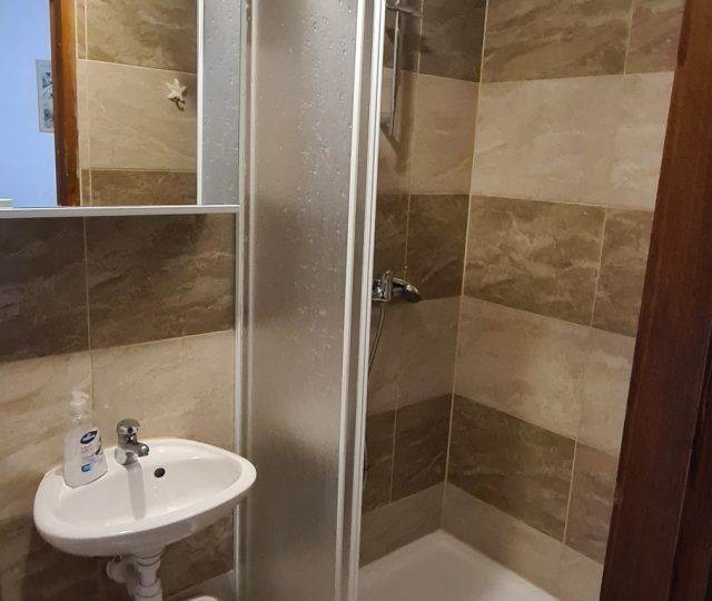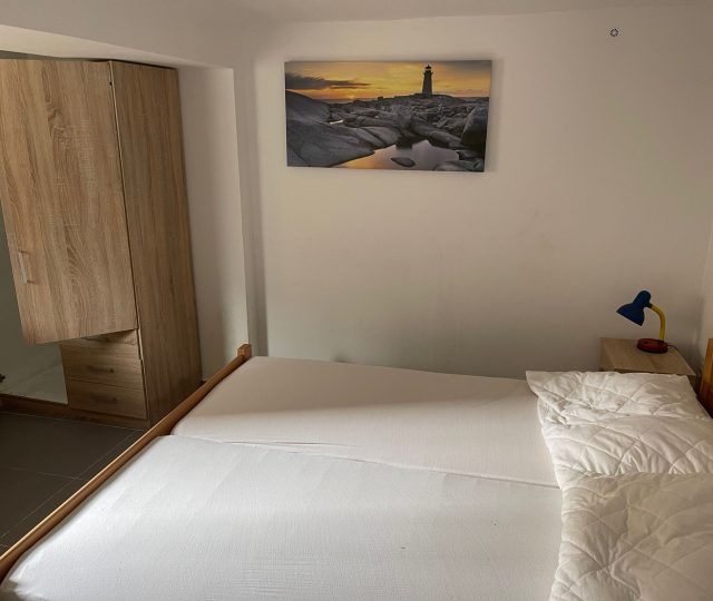 Im Erdgeschoss befinden sich zwei Wohnungen, eine mit zwei Schlafzimmern mit einer Fläche von 34 m2 und eine kleiner als 18 m2. Im ersten Stock befinden sich zwei Apartments mit einem Schlafzimmer von jeweils 21 m2.