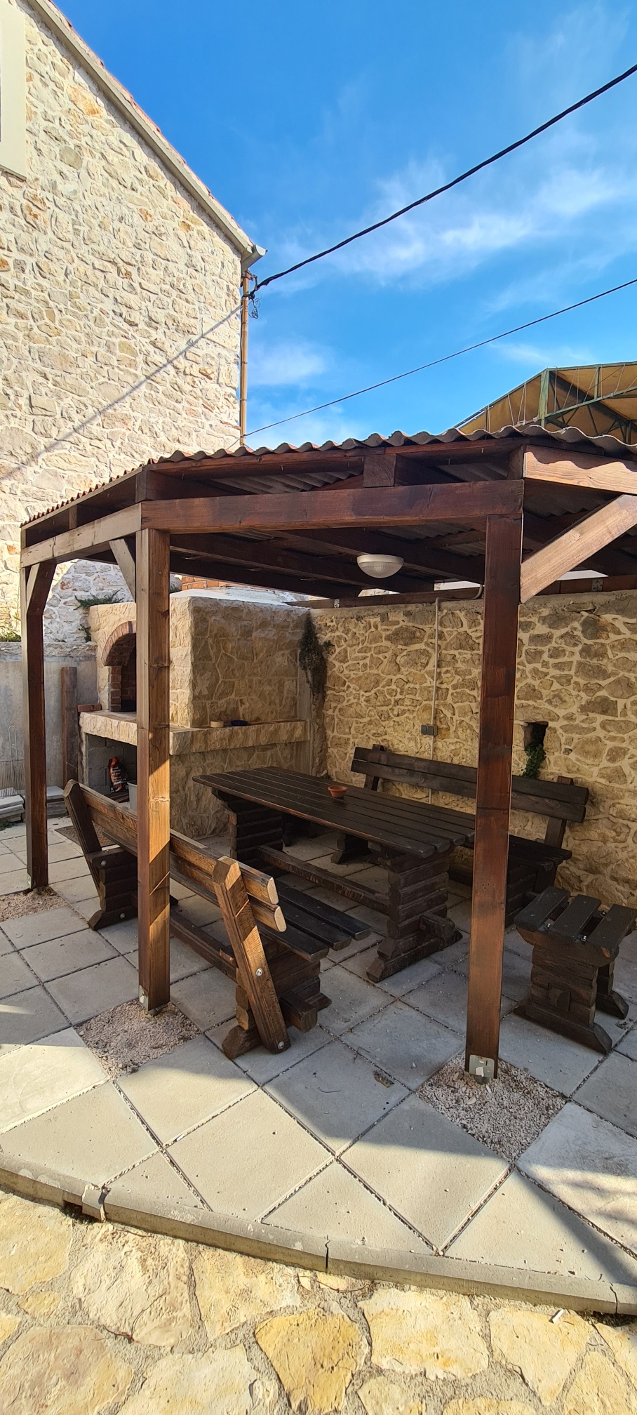 Im Hof gibt es eine Sommerküche, ein kleines Badezimmer und einen Außenkamin.