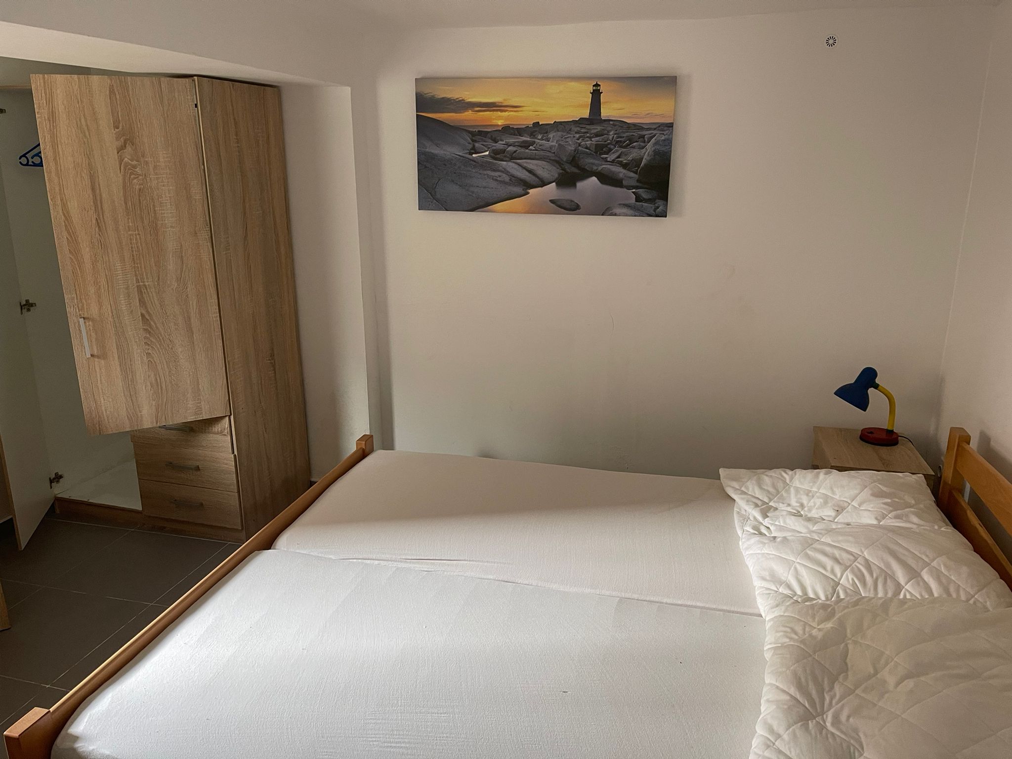 Im Erdgeschoss befinden sich zwei Wohnungen, eine mit zwei Schlafzimmern mit einer Fläche von 34 m2 und eine kleiner als 18 m2. Im ersten Stock befinden sich zwei Apartments mit einem Schlafzimmer von jeweils 21 m2.